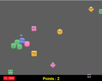 During gameplay, different head shapes and colours move toward you. Collect the shapes that match your current blue shape, they will join to your blue self becoming part of you. To gain points, ensure your coloured parts match the correct colour, don't worry if they collide with a different shape of the same colour.