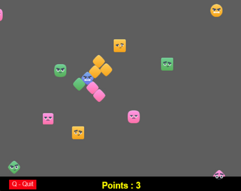 As your score rises, the game speeds up slightly— other shapes travel faster, pushing your reflexes and positioning skills to the limit. Grow your character, and see how long you can keep going.